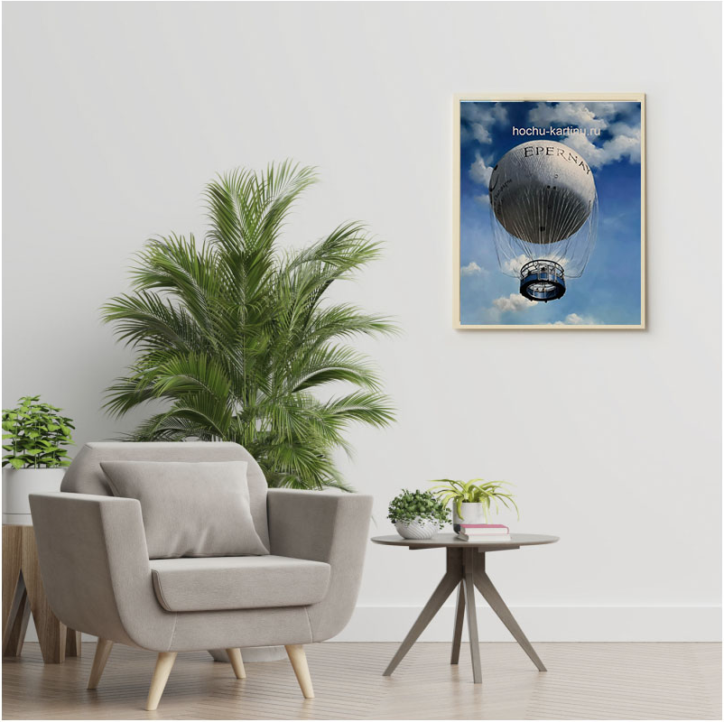 Вернувшись из отпуска, решили, что полученные впечатления хотелось бы сохранить на долго. Фото не подходило ни по размерам, ни по оформлению. Закончив ремонт встал вопрос, чем украсить большую пустую стену? Остановились на картине. Но как её связать с атмосферой близкой и понятной нам? Так пришла идея заказать картину - "Мы на воздушном шаре". Обратились в студию. Указав пожелания по сюжету и размеру. Заказали. Картина очень понравилась.